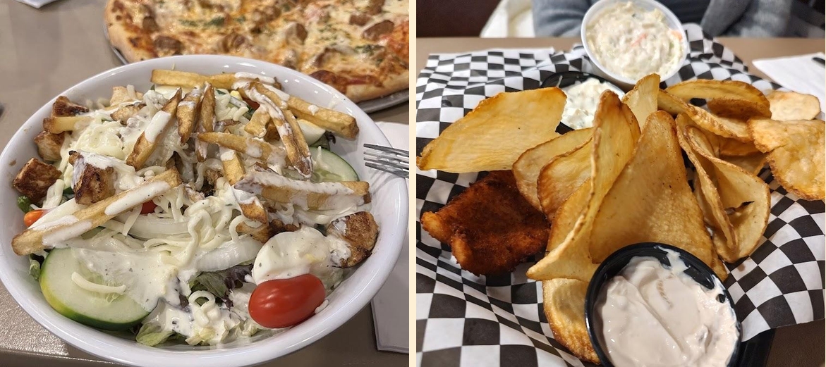 A few reviews mention that the pizza could use more toppings for a fuller flavor experience. Guests appreciate the good food but expressed wishing for more variety in salad toppings.